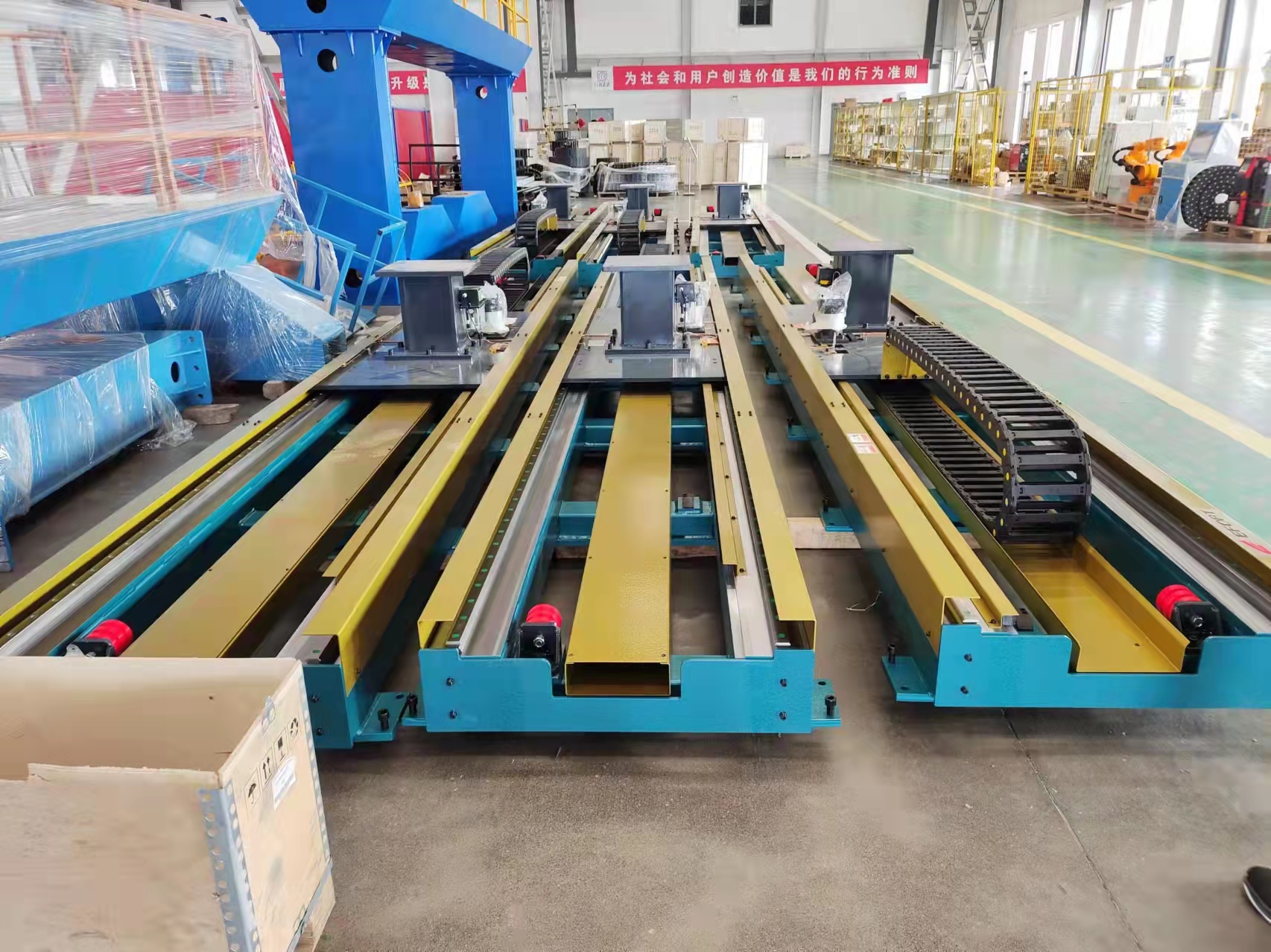 機器人行走軌道又名機器人第七軸、機器人行走軸、機器人地軌、機器人導軌、機器人軌道等等,可以按實際使用長度進行定制,用于大型設備的焊接、搬運、噴涂等工作中。